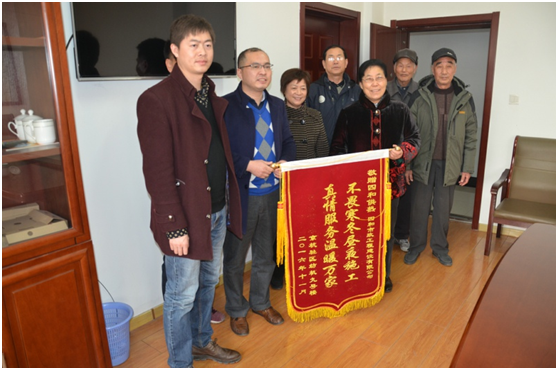 “你們的服務(wù)真是太周到了!終于解決了我們小區(qū)多年來(lái)的集中供熱問(wèn)題,我們代表紡機(jī)廠宿舍全體熱用戶向你們表示忠心感謝!”11月30日下午,紡機(jī)廠宿舍幾名熱用戶來(lái)到濟(jì)寧四和供熱有限公司,送來(lái)一面繡有“不畏寒冬晝夜施工真情服務(wù)溫暖萬(wàn)家”的錦旗,對(duì)四和供熱公司工作人員認(rèn)真負(fù)責(zé)、高效便民的優(yōu)質(zhì)服務(wù)表示感謝。