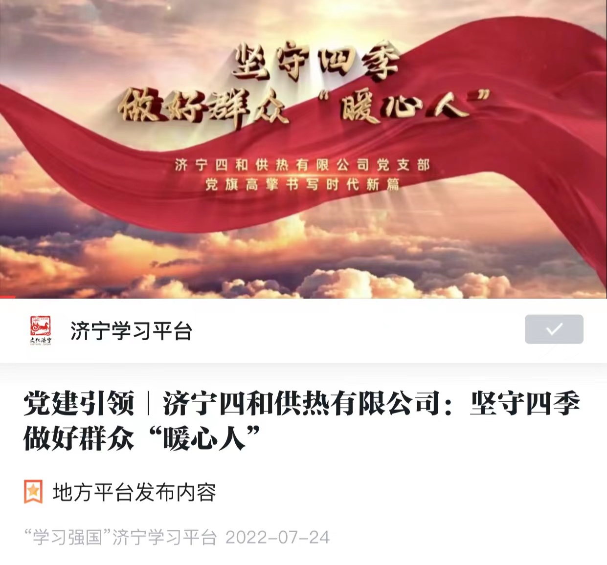 濟寧四和供熱有限公司黨支部微視頻《我和我的支部》榮登“學習強國”平臺展播
